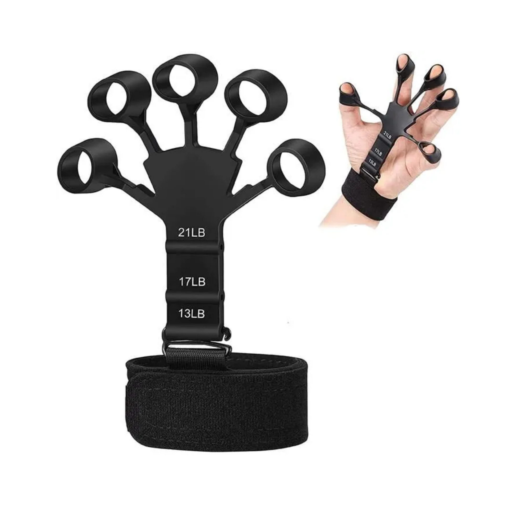 Includes one wrist belt and one finger exerciser designed to enhance finger functionality and grip strength through stretching motions. The upgraded design utilizes wrist support for better control and adjustable resistance.